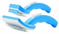 Petzoom 8031CD Review: PetZoom Self Cleaning Grooming Brush, 2-Pack. German Shepherds shed year round. In fact, the two most common reasons that people give for abandoning these lovely dogs is that they shed and they follow you - I kid you not. This comb is a great tool for dealing with the dog's constantly shedding coat. The comb teeth don't stick out so far that they hurt the dog during grooming and then you just push the button on the back of the handle to eject the fur collected so far. Highly recommended. 30 ... Read more »